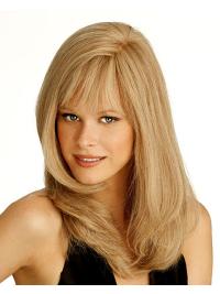 | This wig has long, light layers with face framing whispy bangs. The wig is made from the highest quality 100% human hair which is processed to feel like European hair. With its full lace cap, the wig offers most natural look. Bangs: | 4.5", Crown |