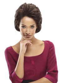 The wig is a classic short cut that includes long delicate layers on top and sides along with our exclusive technology which offers the most natural hairline available. No tape or glue needed!