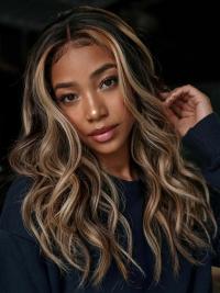 Attitudinal, dimensional, and dramatic, these highlights are instant glam. They are framed around the face in bold streaks that are strategic and fall into a soft wave that gives volume without bulk.
