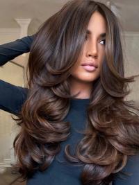 The hair is a flowy style that exudes relaxed vibes, perfect for those who want a low-maintenance yet stylish look.