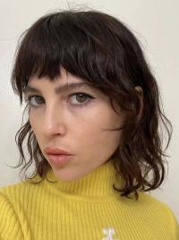 This sleek, shoulder-length cut with soft, wispy bangs offers a polished and elegant look.