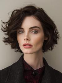The stunning bangs frame the face beautifully, drawing attention to the eyes and giving the hairstyle a youthful, fresh vibe.