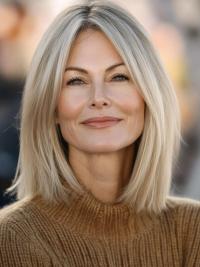A straight and simple lob in a deep blonde shade exudes elegance and simplicity.