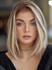 This classic blunt bob is updated with subtle blonde highlights, giving it a spring-ready glow. The straight, sharp lines exude sophistication, while the highlights add a touch of warmth and brightness. This style works beautifully for medium lengths, offering timeless elegance.