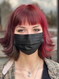 This sleek, shoulder-length cut with soft, wispy bangs offers a polished and elegant look.