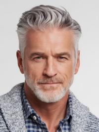 This style is all about embracing natural texture. The soft waves are kept slightly longer on top, allowing the gray highlights to shine through beautifully. The sides are gently tapered for a neat finish. This hairstyle is perfect for men who want a relaxed yet stylish look.