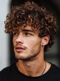 This curly layered hairstyle is a great choice for men with men’s hairstyles thick hair. The defined curls add texture and dimension, making it a playful yet polished look. Perfect for casual outings or creative settings, this style is all about embracing your natural curls with confidence.