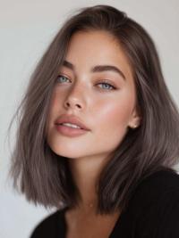 For those who prefer a more edgy look, a blunt lob (long bob) is a chic choice. The blunt ends showcase the thickness of your hair while maintaining a modern, sophisticated appearance. A cool-toned ash brown color adds depth and interest, creating a striking contrast against most skin tones.