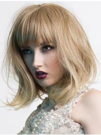This beautiful woman wig is a shoulder length style with short bangs. This style also features High Heat Synthetic Fibers. These high heat fibers can be straightened or curled, so it's effortless to create a one of a kind look that suits your mood!