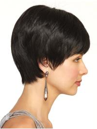 The wig is the perfect elfin cut that will flatter and compliment most face shapes. Wherever you part the wig, she will give the impression that the hair is coming from your own scalp. The cap is the ultimate in comfort and realistic appearance. The fringe is 3.5", so it will sit just at your brow. This then perfectly blends into the side layers which fall onto your face, settling into a razored point. The layers then shorten and contour themselves at the top of your ear. Pretty, cropped and pixie like!