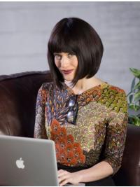 The wig is a modern and stylish bob with longer layers at the front, creating a stunning silhouette. A light and pretty bob, with lots of natural swing. The light but full side swept fringe will accentuate eyes and cheekbones.