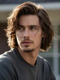This medium wavy haircut for men looks natural and charming. The layered cut adds depth and movement, especially for thick or slightly wavy hair.