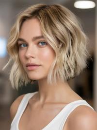 The textured blonde bob is an excellent example of a choppy bob haircut with a soft wave. The slightly tousled waves create a look that’s both polished and carefree, ideal for those who want a low-maintenance style that still has an edge.