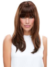Bang out a new look! This 100% human hair clip in bangs piece can be custom cut and heat styled to create any look and blend with any hair texture. With this single accessory, you can instantly add sideswept layers to thicken your hairline or slice a blunt edge for a new style without the commitment of a cut. This Fringe topper have been cut to show a blunt fringe.