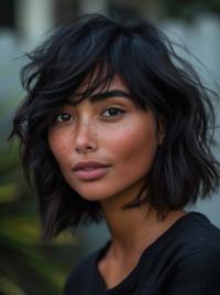 With loose, beachy waves, this longer bob has a relaxed, sun-kissed vibe that’s ideal for a casual, easygoing look. The middle part and gentle waves create a soft symmetry, adding fullness and body to the style.
