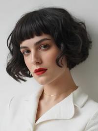 The classic french bob is coming back, and the new one acquires the added flavor of micro bangs. The blunt edge gives it a bold, somehow gothic style, with the cut waves making it wearable. It is a bold yet definitely fashionable – the type of outfit that causes people to look twice.
