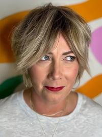 This look is dynamic, with a side-swept fringe that adds softness and a contemporary edge. It’s tailored for those who prefer a stylish, maintenance-friendly hairstyle that works well for both casual and formal settings, highlighting a confident and fashionable demeanor.