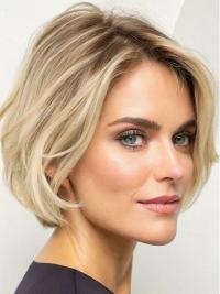 This layered short bob has just the right amount of volume to bring life to fine flat hair. Soft highlights add dimension, making it a great choice for women who want a little extra flair.