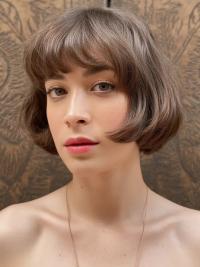 The final appearance of the set suggests nostalgia-the short bob hairstyle with brown hair color, which suits all complexions. It is full, rounded, and softly layered, reminiscent of retro styles of cinema but nevertheless current.