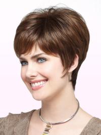 This beautiful short wig works well with high Heat Friendly Synthetic Wig Heat Friendly Synthetic Wig fiber to achieve styling variations. It features soft layers with a fringe and a tapered back that hugs the nape.