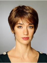 Short Brown Synthetic Boycuts Sassy Straight 100% Hand-tied Wigs