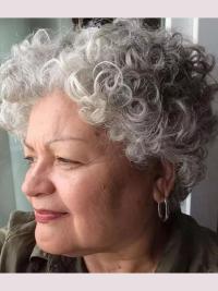 This pixie hairstyle is a celebration of natural texture, with lively silver curls that add volume and an exuberant touch to the classic pixie cut. The layers are masterfully shaped to enhance the curl pattern.