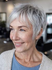 Edgy yet feminine, this pixie shag is a standout for women who want easy upkeep without sacrificing style. Textured ends and feathered layers build body at the crown while keeping the neckline clean and fresh.