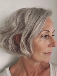 This short bob with a soft bend is one of my go-to’s for clients who want structure without harsh lines. The silver tones look modern and fresh, and the gentle wave adds softness that keeps it from feeling too stiff.