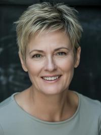 The chic layered pixie with soft feathered blonde highlights frames the face with shine and softness.
