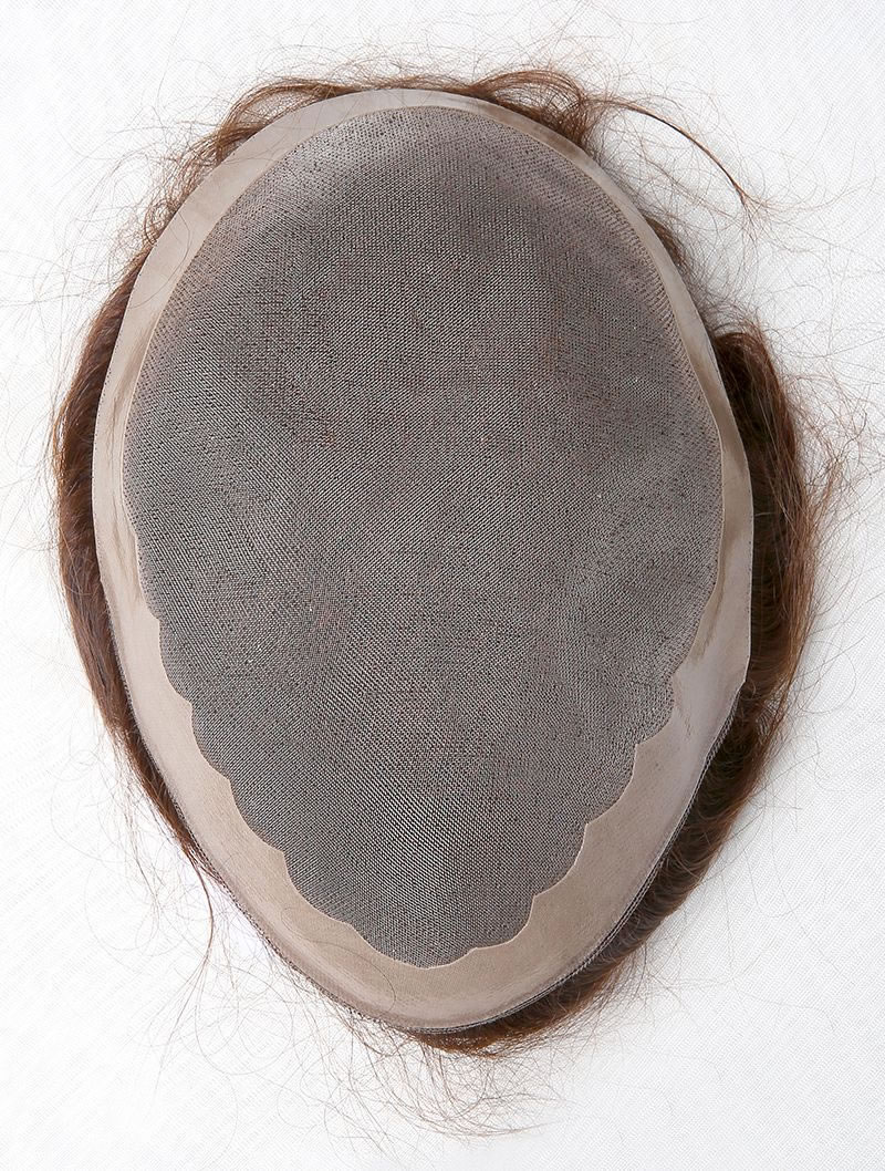This mens toupee has a complete mono-filament base, single hair per knot giving the appearance of natural hair growth from the scalp. It is soft to the touch. Basically see through and very hard to detect. The monofilament weaving allows each strand of hair to move freely and more naturally. It has been fully HAND TIED so that the appearance is as natural as possible.