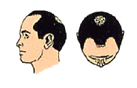 Cover hair loss areas equals or is smaller than 4” x 4”. In the early stages of hair loss some clients only experience hair loss is isolated areas, i.e. the front hairline or crown area as shown in the illustration below.