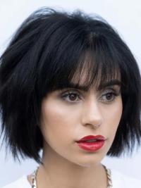 This fresh, youthful bob haircut is perfect for those with wavy hair. It's an edgy cut that hits right above the jawline, emphasizing the cheekbones (and your cute dimples).