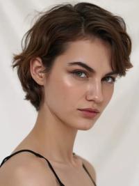 This shape fits the head in all the right ways, it is curved, just slightly shaped and a little tuck behind the ear. It is a pixie that is not too cropped, and does not veer too feminine, allowing you to leave the side part that falls down the back and even a little of the volume that the ends possess.