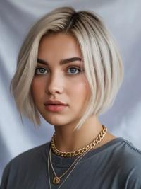 This is where the light movement combines with cold tones. This short stacked bob is platinum blonde with a touch of tousling on the ends that create a casual but high end feel. It possesses that slightly dishevelled elegance which looks manufactured but never too so.