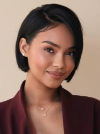 This stunning straight bob combines natural texture with a glamorous finish, ideal for short straight bob hairstyles black women looking to add a touch of flair to their look.