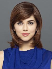It is a shoulder-length synthetic hair wig! The classic women's wig with point parting and long bangs guarantees a fantastically light wearing comfort thanks to its extremely elaborate workmanship! The authentic look, which is created by the absolutely natural fall of the hair and the film attachment in the forehead area, is also comfortable!