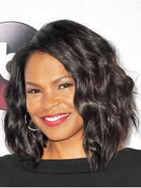 Shoulder Length Black Wavy Bobs 14" No-Fuss Nia Long Wigs