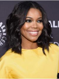 Shoulder Length Black Wavy Bobs 14" Perfect Gabrielle Union Wigs