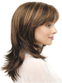 This Wig is a jaw dropping long layered wig with a face framing fringe that highlights all of your best features. The full monofilament top will give the look of your own hair growth, even up close! The full feathery bang blends in perfectly with the fringe to complete this timeless look.