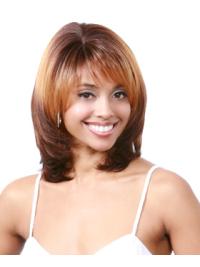 The wig's fringe can be worn swept to the side. The beauty of the wig is that you can style and cut as you decide, so if you prefer a fringe simply visit your hairdresser for a trim. The choice is yours!