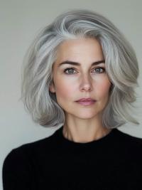 The bright silver tone is both modern and timeless, allowing for a radiant and refined style that celebrates natural greys.
