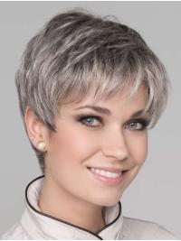 The cut is easy to wear. A fringe falls below the eyebrows and highlights your look. A short gradient from the temples to the ears.