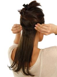 Starting with the two center clips, snap in the middle of your head, attaching to your own hair in a downward direction. Pulling across in a straight line, snap the two remaining clips on either side of your head.Step 5: Style and Go