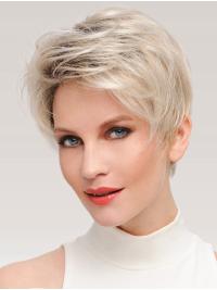 Straight Monofilament 6" Platinum Blonde Short Wigs For Women