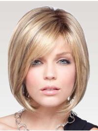 The wig is a chic and sophisticated bob style. Pretty and very feminine. The cap will give the impression that the hair is coming from your own scalp. It is the ultimate in comfort and realistic appearance. The fringe is 5.5", so it is worn swept to the side.It is wispy and textured so it frames your face softly, rather than being too heavy.