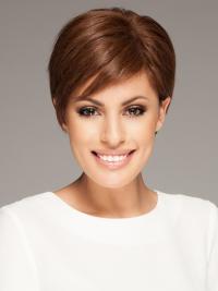 It is very chic, short Remy human hair wig. Precision cutting is the key to the beautiful shape. The layers around the face can be worn multiple ways including parsed and to the side or pushed forward. The layers at the nape of the neck lay flat.