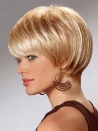 This is a classic cut Heat Friendly Synthetic Wig features soft layers which taper down to the neck. The bangs give you a sleek and stunning style. The amazing cut requires no styling!
