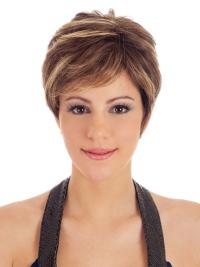 This semi-tapered Heat Friendly Synthetic Wig short wig with wispy layered and soft bangs made in pixie size, which sit nicely over the ears to frame the face.It's easy to style.Thanks to its capless with open wefting top construction, this is one of our most popular styles - already!