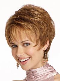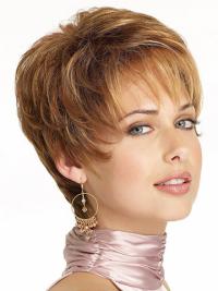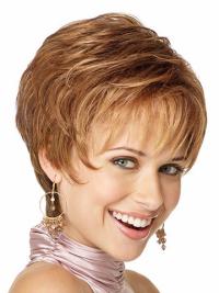 It has short, barely waved layers that graduate to a collar-length, neck-hugging, tapered nape. Style it any way you want - the sheer scalloped front and hand-tied top mean extra-cool comfort and styling versatility.