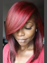 This sleek and polished lob (long bob) is an elegant choice for older women who prefer a refined yet modern look. The deep burgundy hue adds richness, while the side-swept bangs create a face-framing effect that enhances natural beauty.